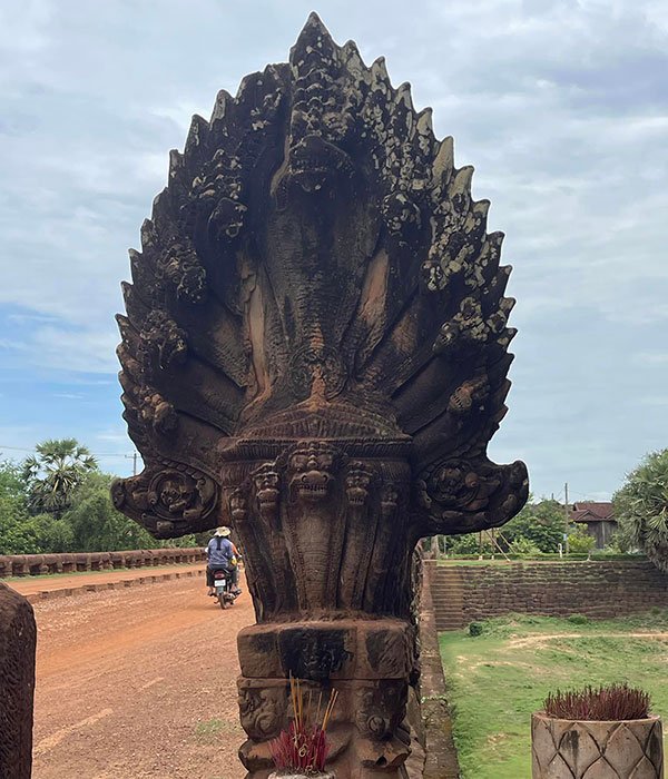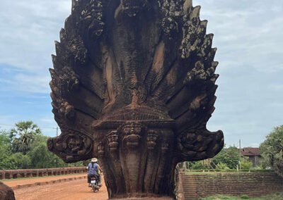 Activities: Driver from Kampong Thom to Siem Reap. Stop at Sambor Prei Kuk. Walk through Khmer villages & visit the ancient Naga Bridge.